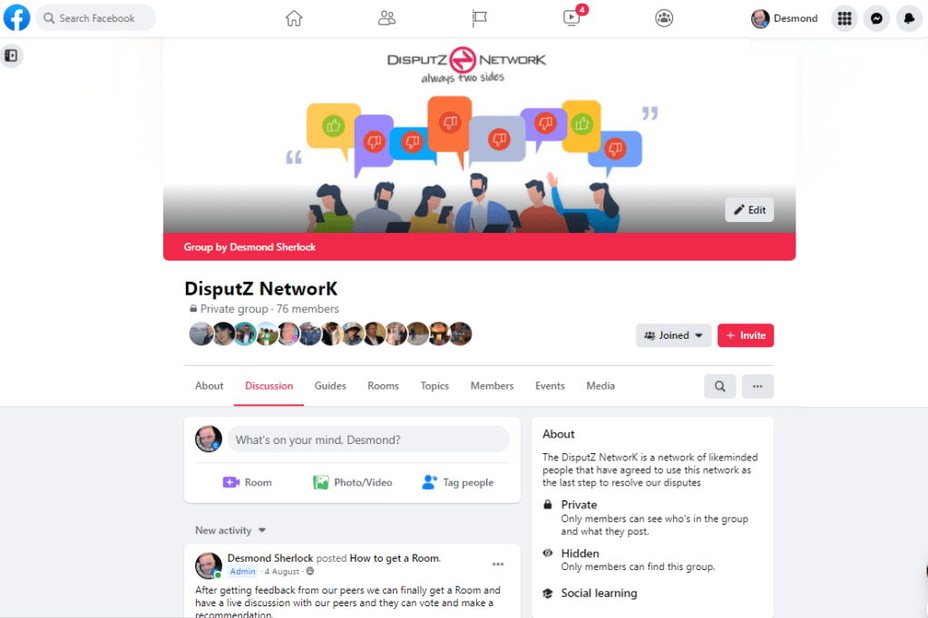 If we get to the third phase and are still unable to resolve our dispute, it is automatically posted onto the Disputz.com peer review network to get feedback from our peers (in this case, startup peers). And finally, if still unresolved, a vote is taken over a zoom call for a recommendation to be made.