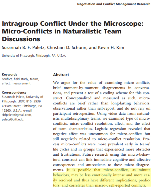 This is why at SpatzAI we recommend that teams should resolve their spats (micro-conflicts) rather than wait until they escalate into full blown conflicts before they attempt to resolve them.