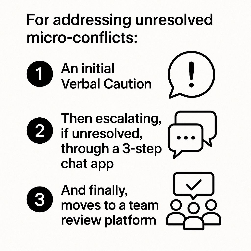 When someone in a workplace team feels they’re being treated unfairly by a teammate or manager… we recommend SpatzAI — a system that empowers affected team members to address the issue directly and in real-time, while offering the protection of a transparent team review process, that is if the final conflict remains unresolved.