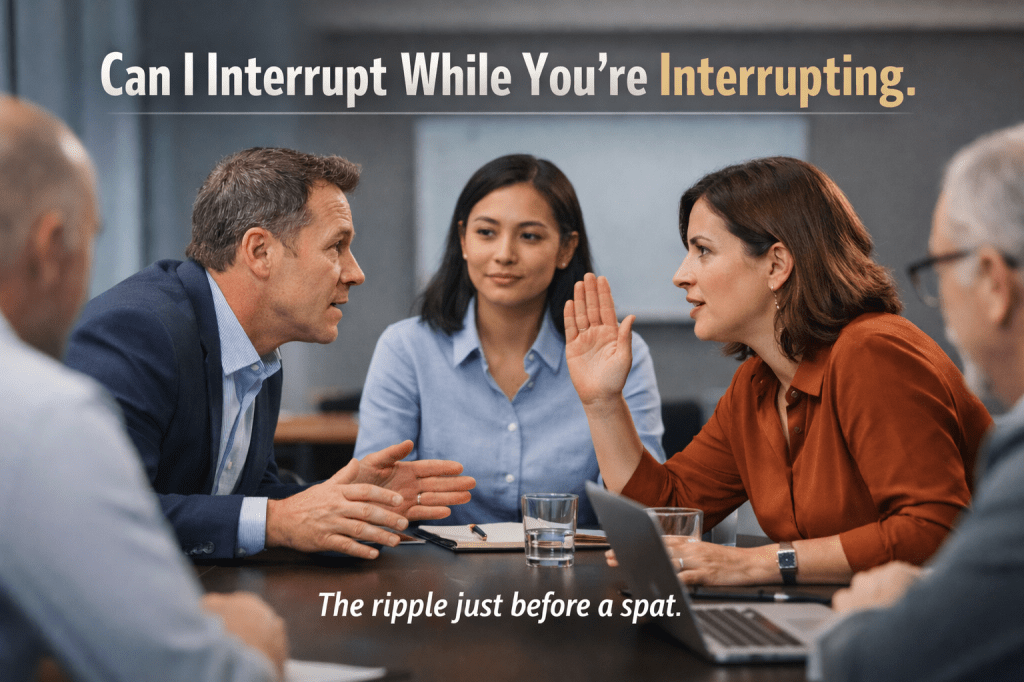 Some interruptions are unfair. They cut across, dominate, dismiss, derail, or seize control of the floor. Other interruptions are part of a fair interaction, where something important is revealed and the other person yields because the exchange is moving somewhere useful.