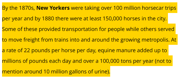 Better horse manure collection (a genuine problem in 1900s) .